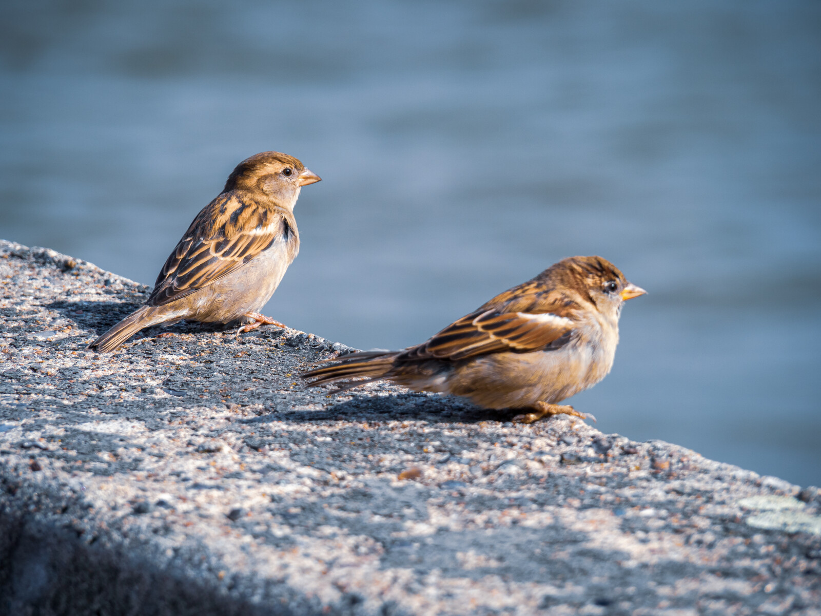 gråspurve nyder solen