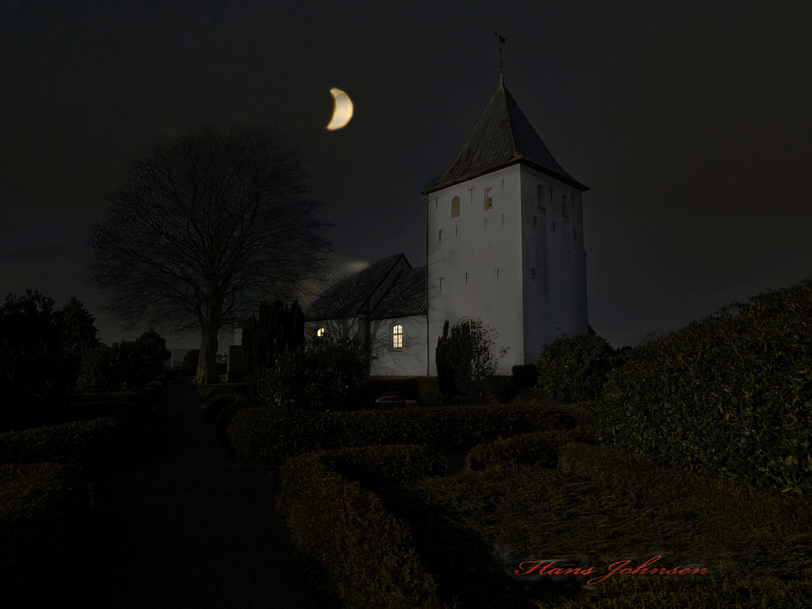 et aften foto af Grarup Kirke