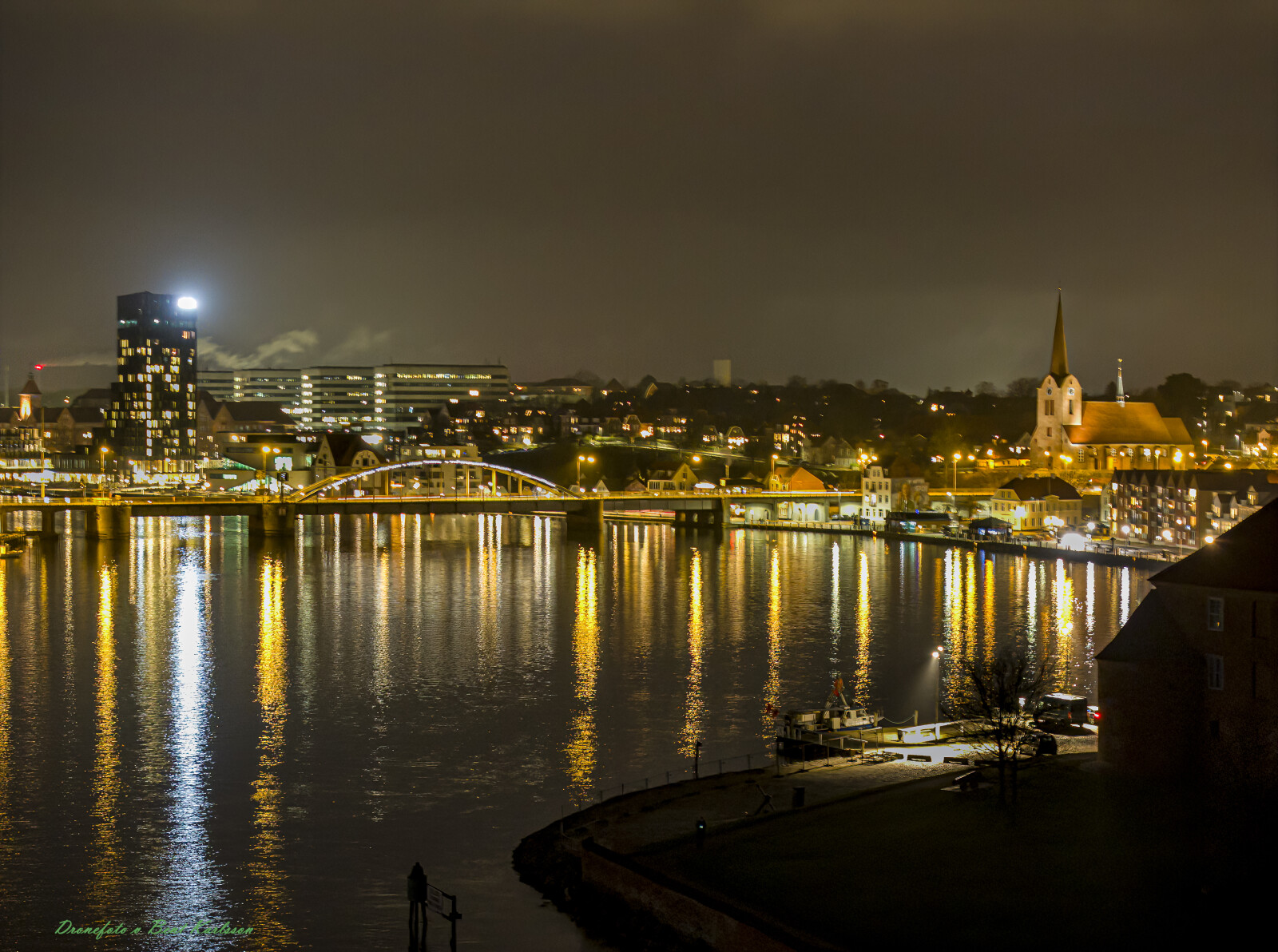 #Sønderborg havn natbillede 3x fra slottet drone