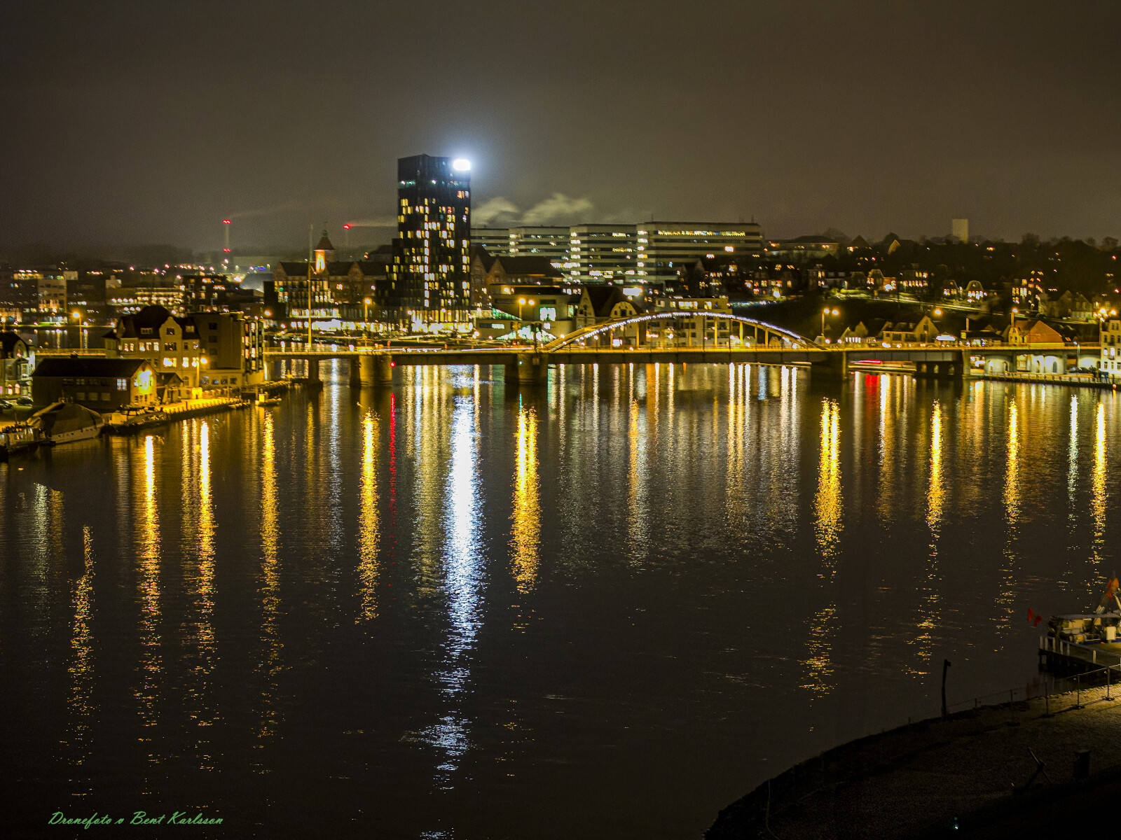 #Sønderborg havn natbillede 3x fra slottet drone