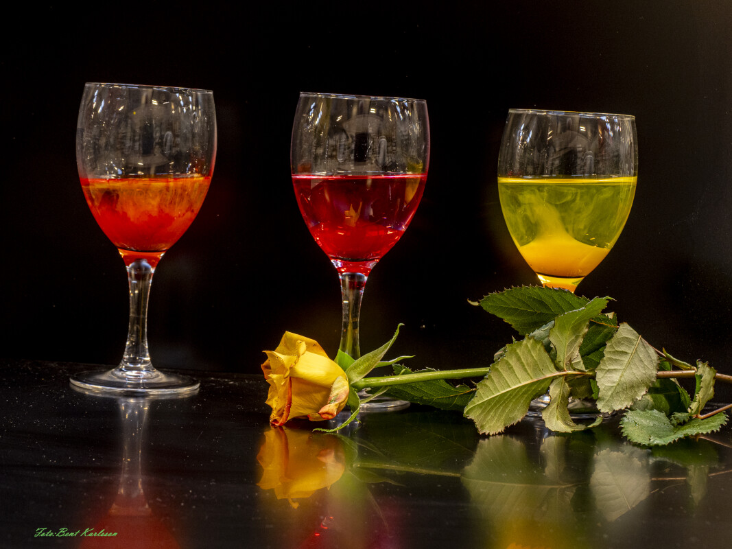 #vinglas#rose#rød#gul#studie#stilleben