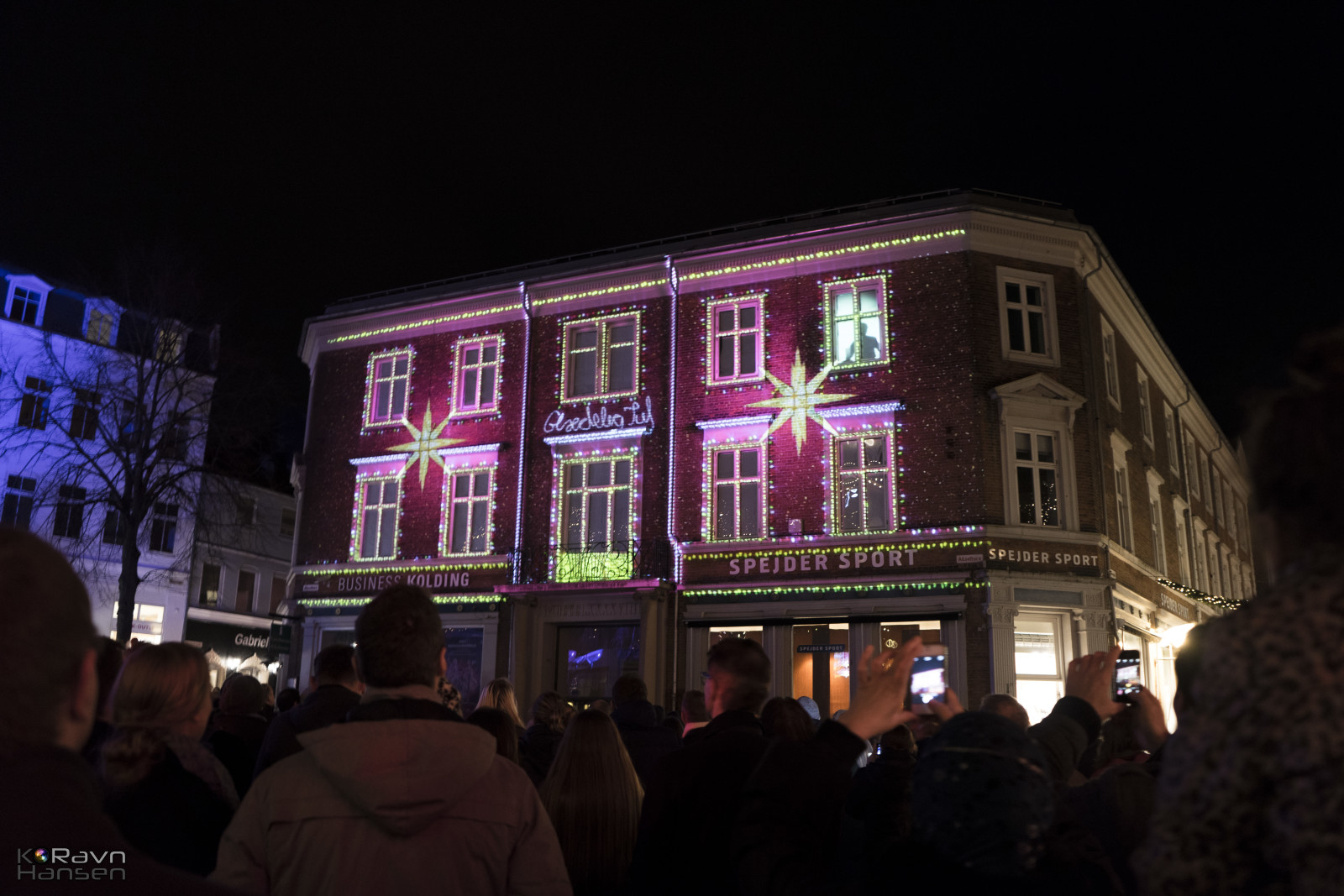 Lysshow på bygningsvæg