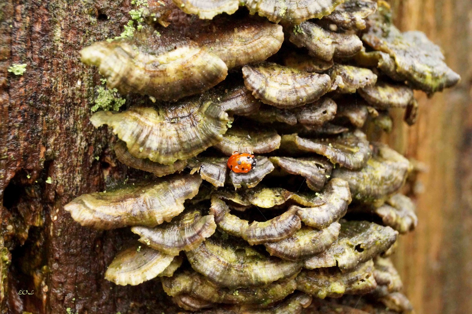 En lille mariehøne søger ly i et højhus