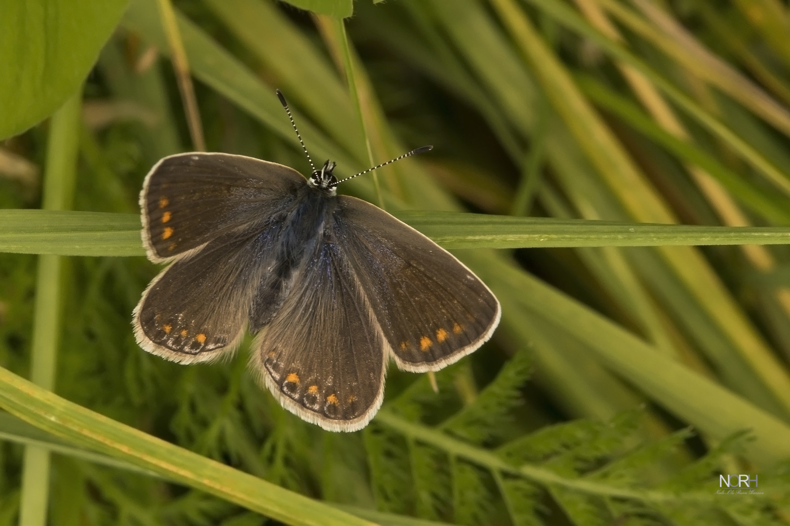 Hannen af Almindelig Blåfugl er vildt beundret af næsten alle mennesker, med sin meget gennemtrængende blå farve. Dog skal man ikke kimse af Hunnen som jeg her har skudt i en dejlig vinkel. Meget sarte farver, hvor den blå stråler fra kroppen , ud i den brune på vingerne.