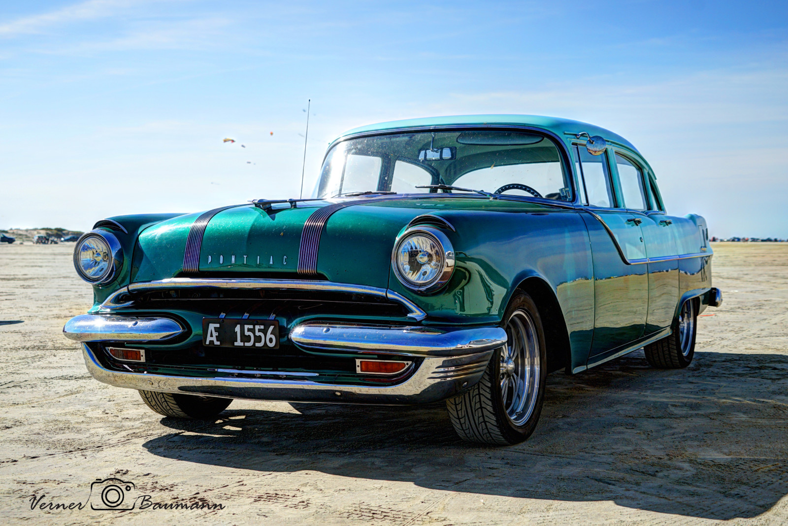 En pæn Pontiac Chieftain på stranden . #Bil#HDR#Gammel#