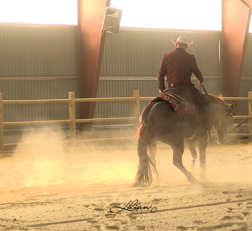 Hesten samler sig efter stop øvelsen.