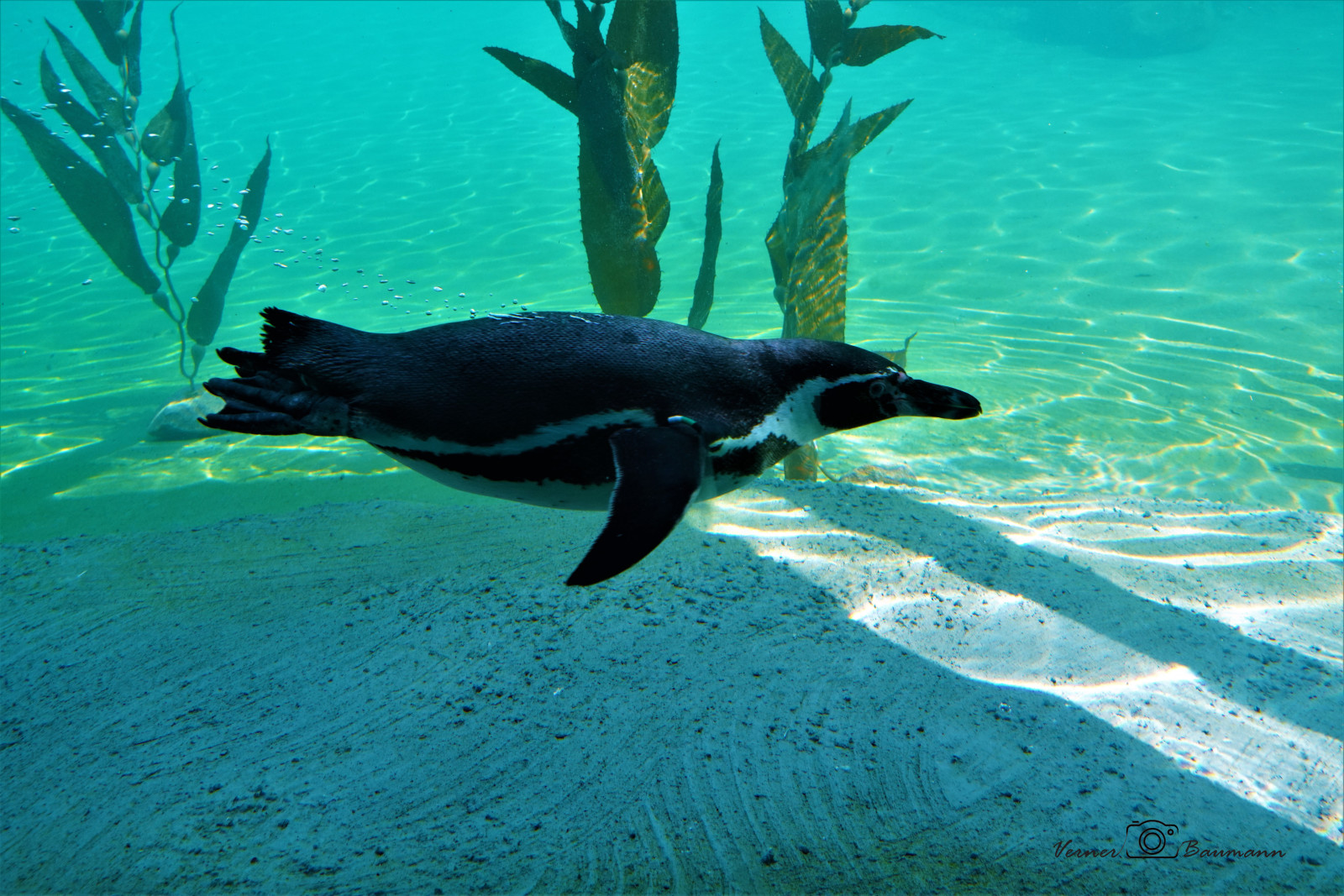 pingving svømmer under vand