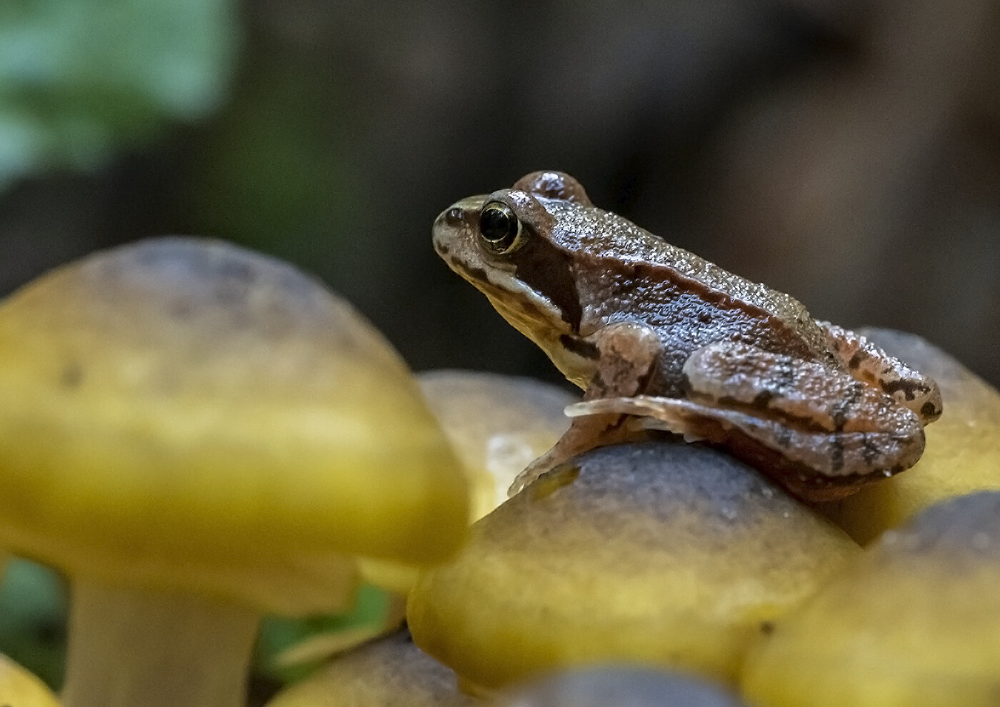 Også fra svampeturen og der var en lille konkurrence indbygget som hed: Hvem kan skyde en svamp med en frø på